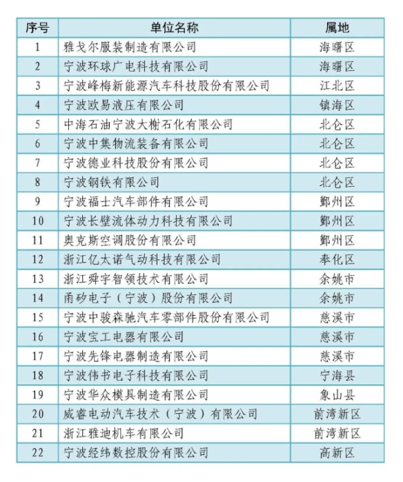 根據《中共浙江省委辦公廳 浙江省人民政府辦公廳關于印發〈浙江省企業管理現代化對標提升工程行動計劃(2021-2025年)〉的通知》(浙委辦發〔2021〕23號)和《關于印發〈寧波市推進管理創新提升行動計劃(2021-2025)〉的通知》(甬制高辦〔2021〕19號)要求,經企業自主申報、區(縣、市)經信部門初審推薦、專家評審等程序,認定雅戈爾服裝制造有限公司等22家企業(排名不分先后)為“2023年度寧波市管理創新提升標桿企業”,現予以公布。