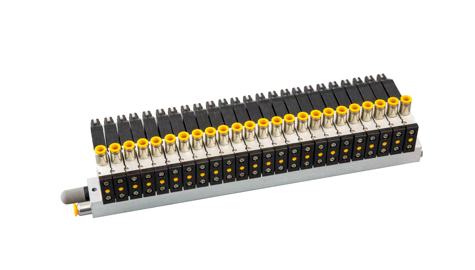 ? 兩位三通直動式電磁閥; ? 最大閥位數12位,24個電磁閥; ? 集成閥組采用高強度鋁合金匯流板,擁有外觀專利; ? 實現同方向配線&模塊式設計;設置手動按鈕; ? 電磁閥性能穩定可靠,適合長時間通電場合