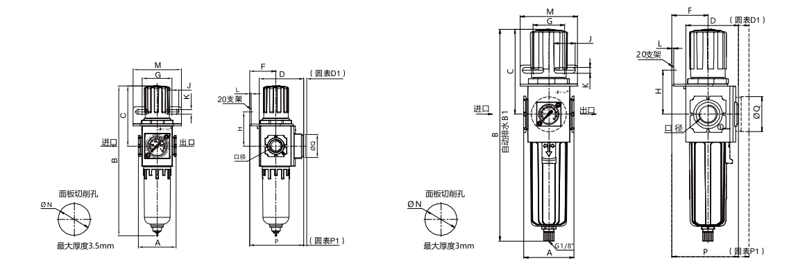 | 型號 | 接管口徑 | A | B | B1 | C | D | D1 | F | G | H | J | K | L | M | N | P | P1 | Q |