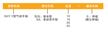 訂貨舉例:Y型氣動手指,缸徑為25,附磁石,其ERP編碼為:SHY25-S