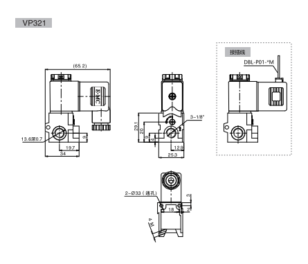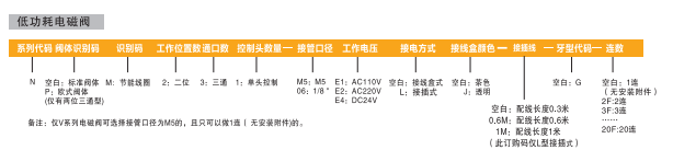 訂貨舉例:N系列電磁閥,標準閥體,標準先導加節能線圈,二位三通,單頭控制,接管口徑為1/8,DC24V,接線盒式,G牙,2連。其ERP編碼為:NM231-06E4-2F