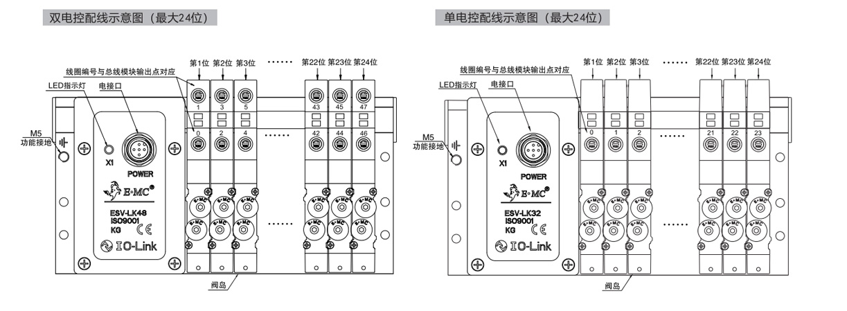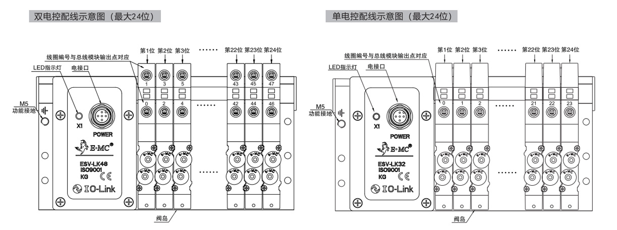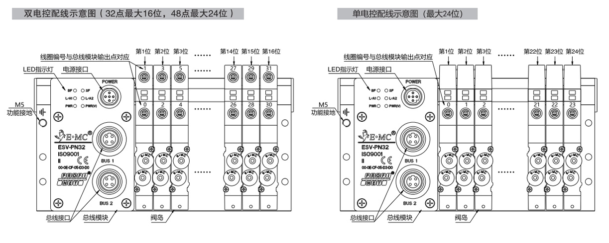 · 輸出點32時最多32個線圈/16個雙電控閥位,輸出48點時最多48個線圈/24個雙電控閥位。