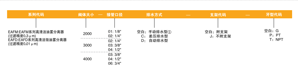 注①:EAFM/EAFD2000系列只有手動(dòng)排水型