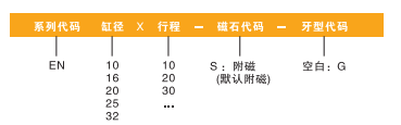 訂貨舉例:EN系列氣缸,缸徑32,行程30。附磁石,本體牙型為G牙,其ERP編碼為:EN32X30-S