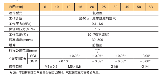 備注:缸徑6和o10的氣缸無可調(diào)型以及無直線軸承型可選